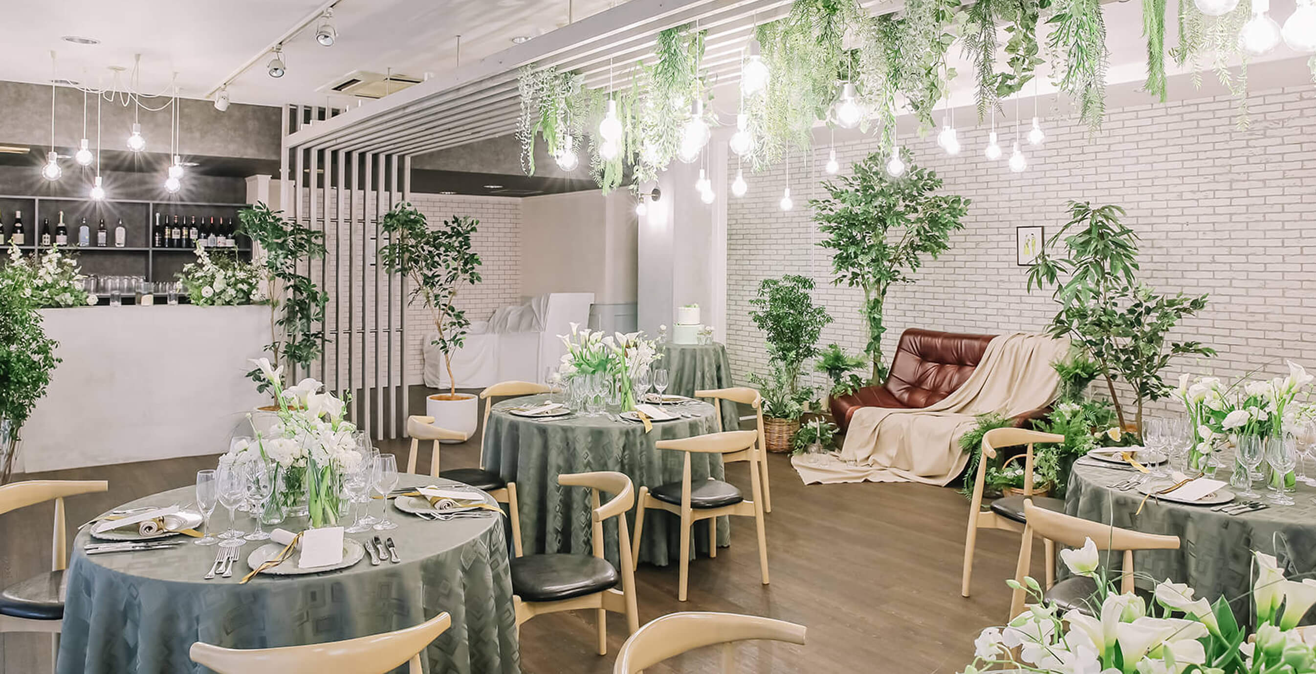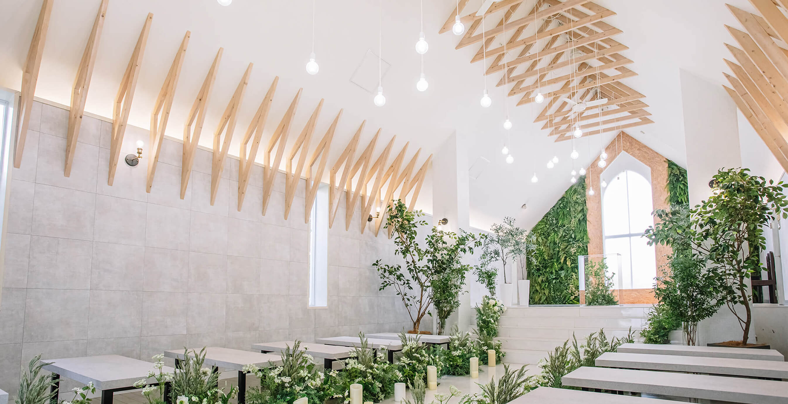 緑と光に包まれたシンプルモダンな空間で自由なウェディングを